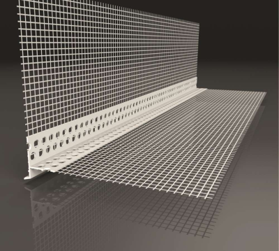 PVC profil s integrovanou sklotextilnou mriežkou na čisté ukončenie tepelnoizolačných systémov na podhľadoch okien, balkónov a stropov. Predaj možný aj na kusy.