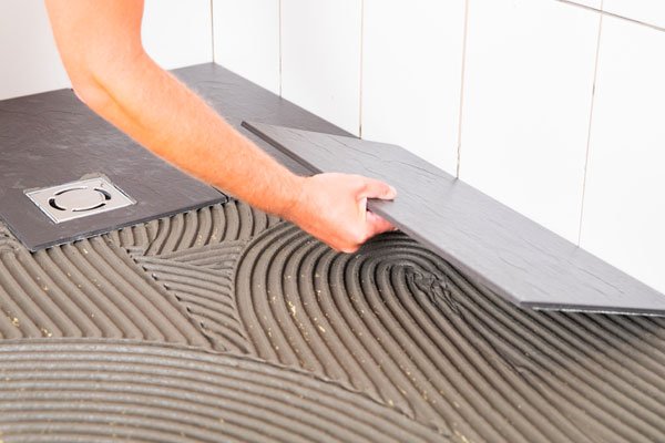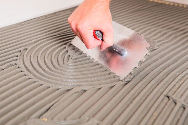Hotovú zmes pomocou zubovej stierky nanesieme na podlahu tak, aby mierne presahoval plochu, ktorú vieme bez problémov nalepiť. Postupne pridávame lepidlo na danú plochu. Lepidlo nenanášame ihneď na celú plochu, na ktorej bude dlažba, pokiaľ vám to neumožní pohodlné spracovanie a kladenie dlažby do lepidla.