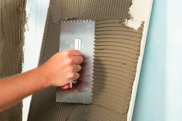 8. lepenie obkladu - Nanášanie lepidla na podklad
