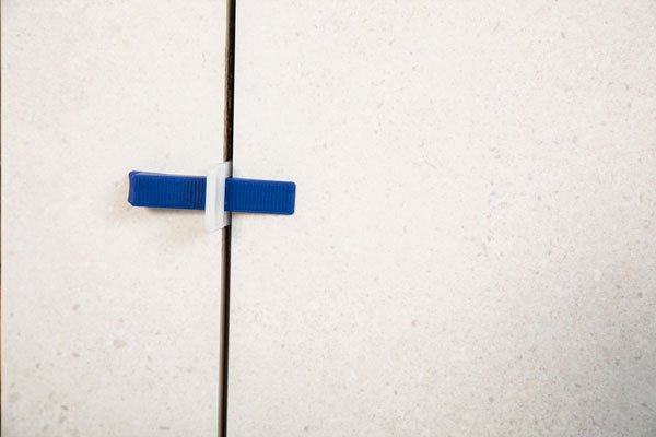 Priebežne kontrolujeme rovinnosť pomocou vodováhy. Medzi obklady odporúčame vkladať dištančné krížiky, vďaka, ktorým šírka škár bude rovnaká.